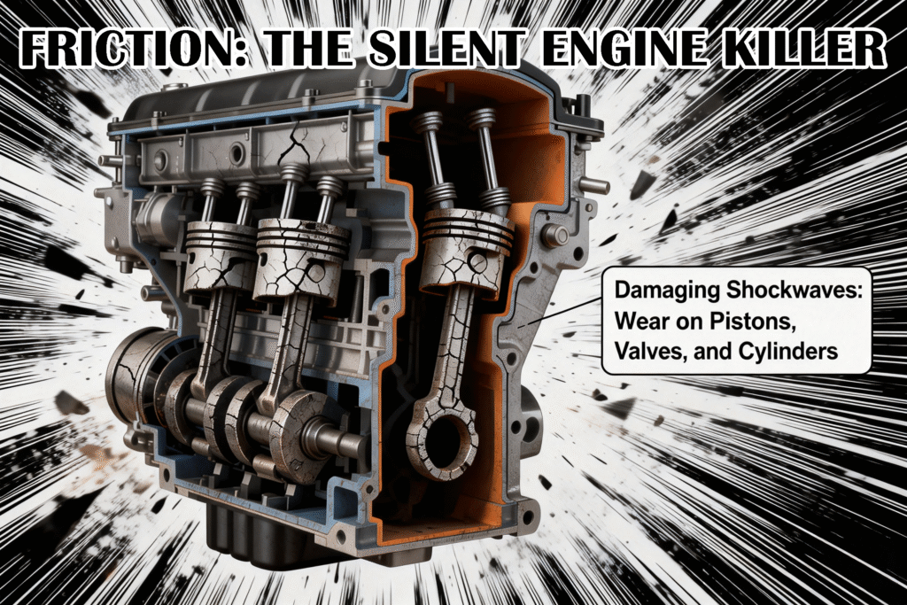Alongside knock, relentless friction is a constant enemy. Even with a film of oil separating them, metal surfaces like piston rings against cylinder walls are in a perpetual state of microscopic contact. Over time, this contact wears down the metal, creating fine particles that circulate and further accelerate wear. This friction robs your engine of power, converts precious energy into waste heat, and gradually degrades the tolerances that keep your engine running efficiently and smoothly.